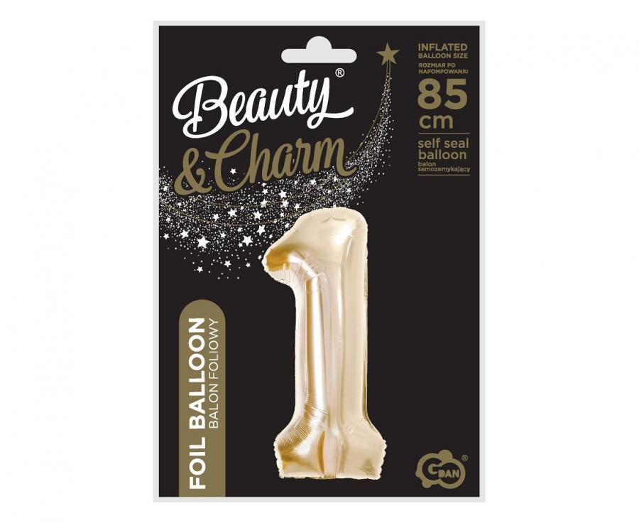 Pezsgőszínű 1-es szám fólia lufi 85 cm