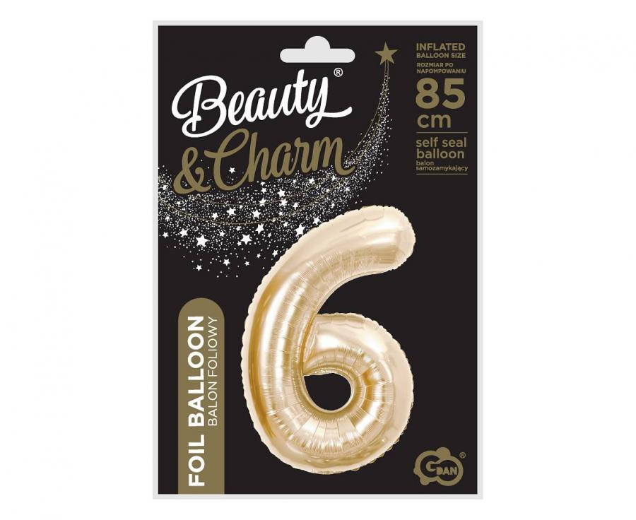 Pezsgőszínű 6-os szám fólia lufi 85 cm