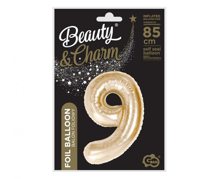 Pezsgőszínű 9-es szám fólia lufi 85 cm