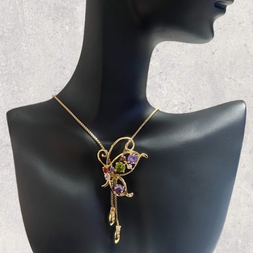 Antiallergén nyaklánc , pillangó forma színes kövekkel díszítve