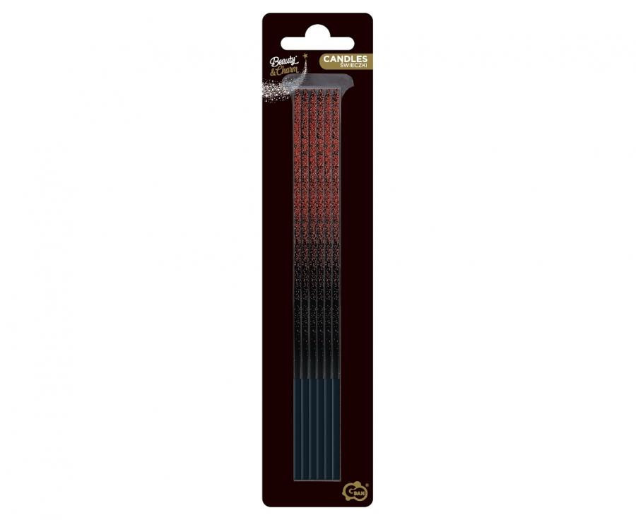 Piros Ombre Red Glitter tortagyertya, gyertya szett 6 db-os
