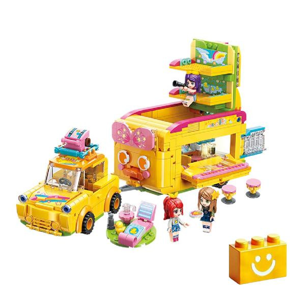 QMAN® márkájú, minőségi, készségfejlesztő építőjáték lányoknak. Kiskacsás utánfutós túraautó minifigurákkal és szuper kiegészítőkkel.