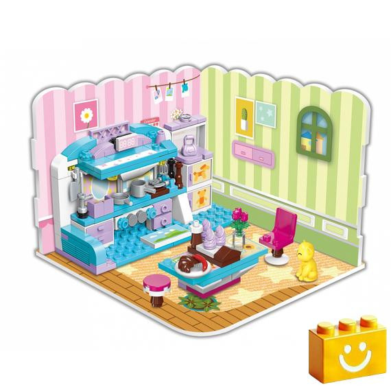 QMAN® márkájú, minőségi, készségfejlesztő építőjáték lányoknak. 3-as variáció! Egyszer nappali, aztán hálószoba, majd konyha. Egyszerűen pazar és részletgazdag csajos építőjáték! Az ára meg szemtelenül kedvező.