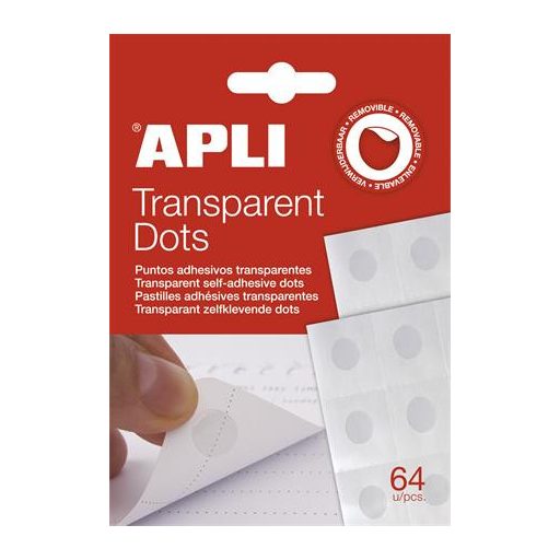 Ragasztókorong, eltávolítható, APLI "Transparent Dots", átlátszó