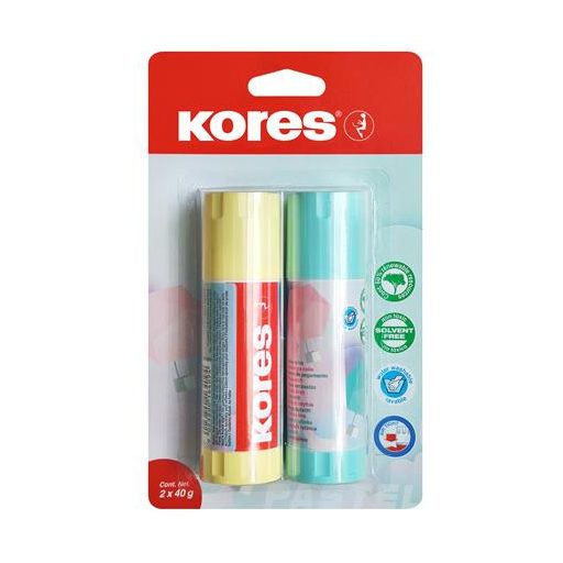 Ragasztóstift, pasztell színű tokban, 2x40 g, KORES, vegyes színek