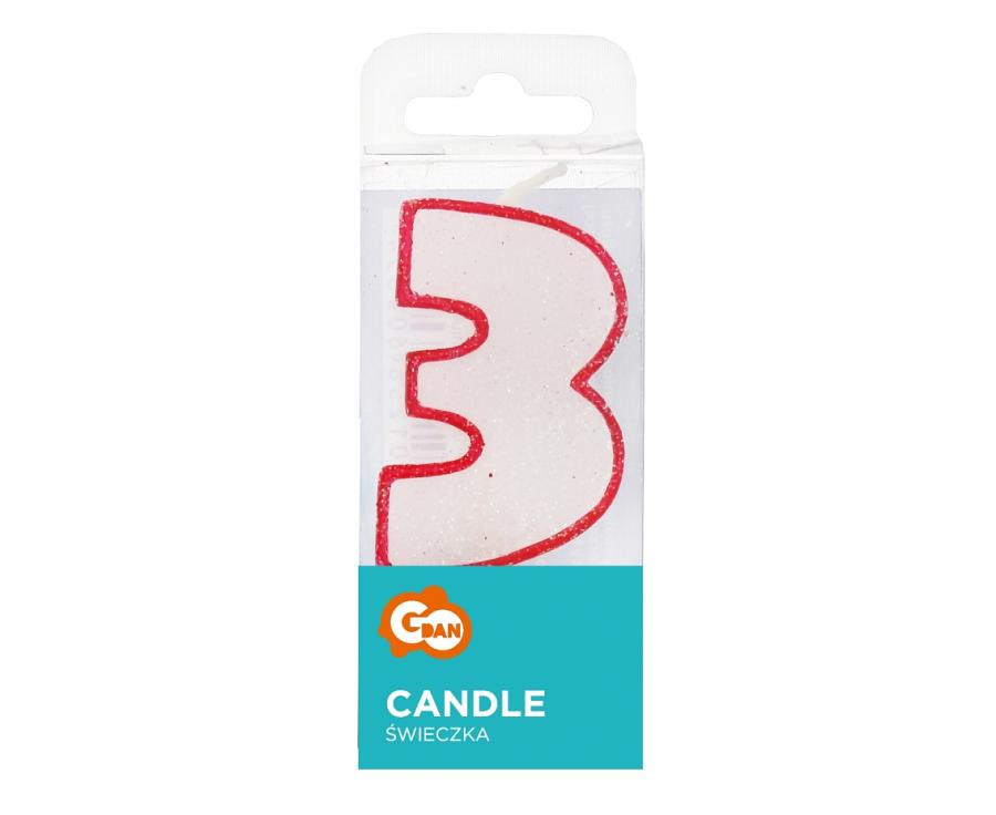 Red Outline Glitter, Piros 3-as számgyertya, tortagyertya