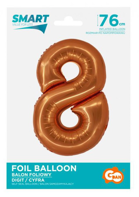 Réz 8-as Copper szám fólia lufi 76 cm