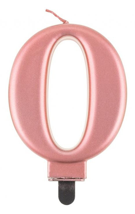 Rose Gold 0-ás Metallic számgyertya, tortagyertya