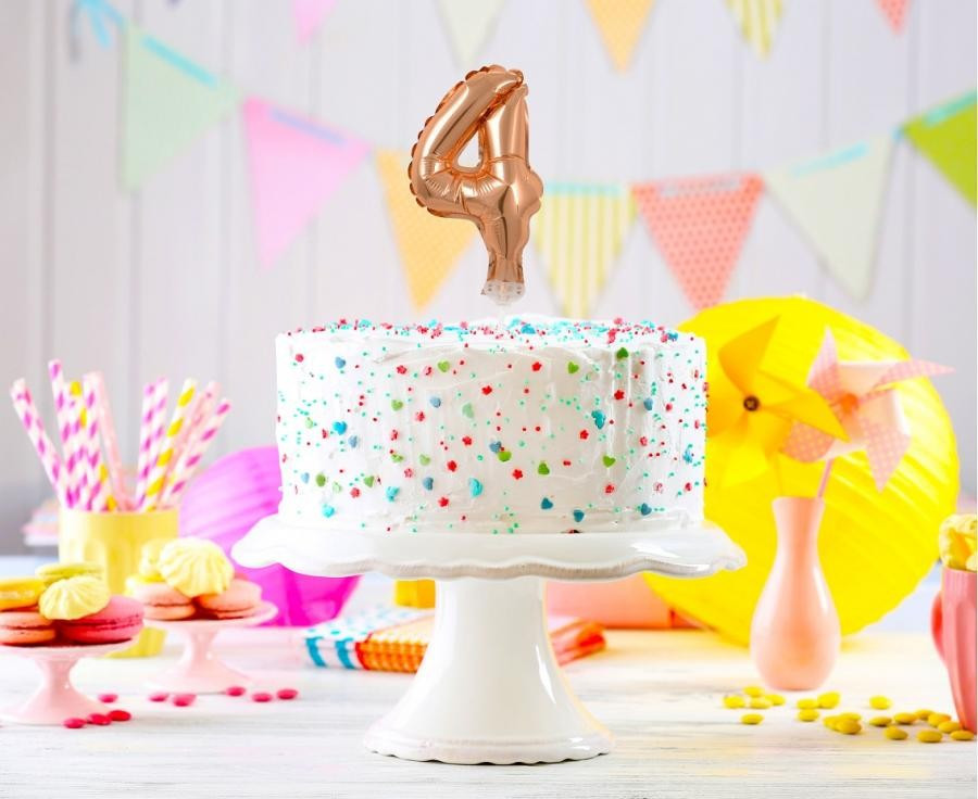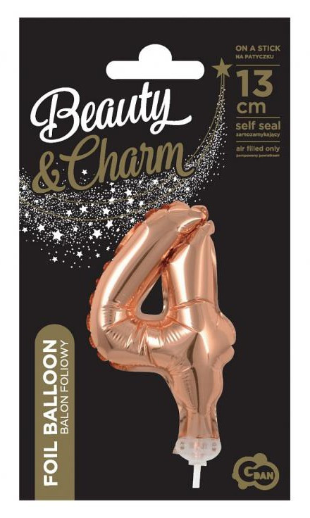 Rose Gold 4-es szám fólia lufi tortára 13 cm