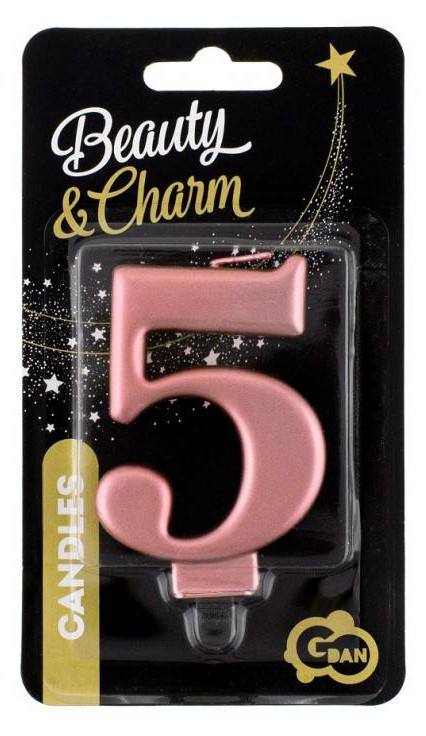 Rose Gold 5-ös Metallic számgyertya, tortagyertya