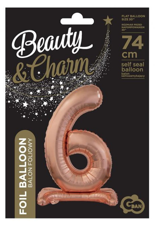 Rose Gold 6-os szám fólia lufi talppal 74 cm