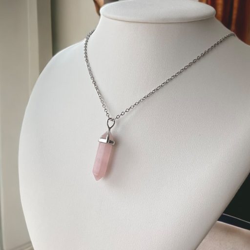 Rózsakvarc kétcsúcs medál nemesacél láncon