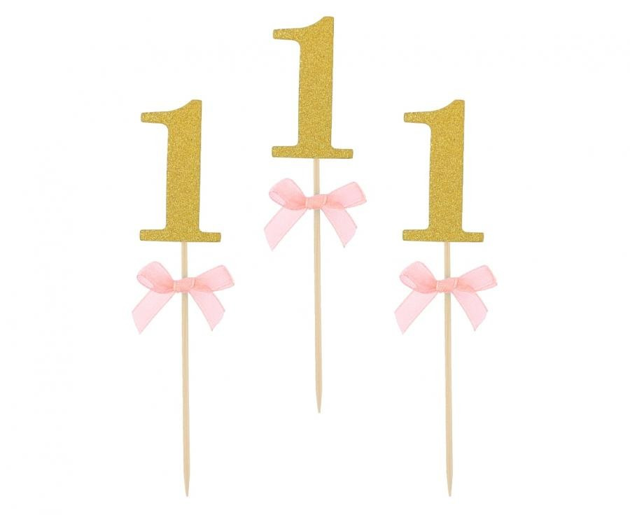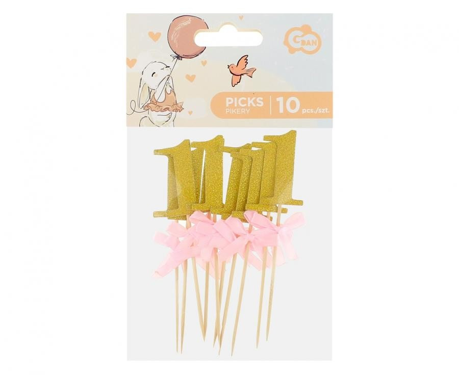 Pink 1st Birthday díszítő pálca 10 db-os