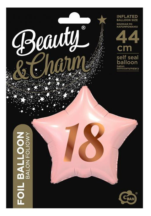 Rózsaszín Happy Birthday 18 Pink csillag fólia lufi 44 cm