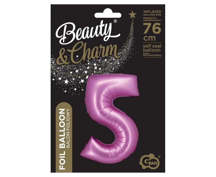 Satin Pink, Rózsaszín 5-ös szám fólia lufi 76 cm