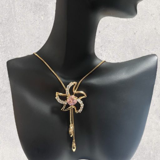 Antiallergén nyaklánc nagyon szép csillogó rózsaszín kővel