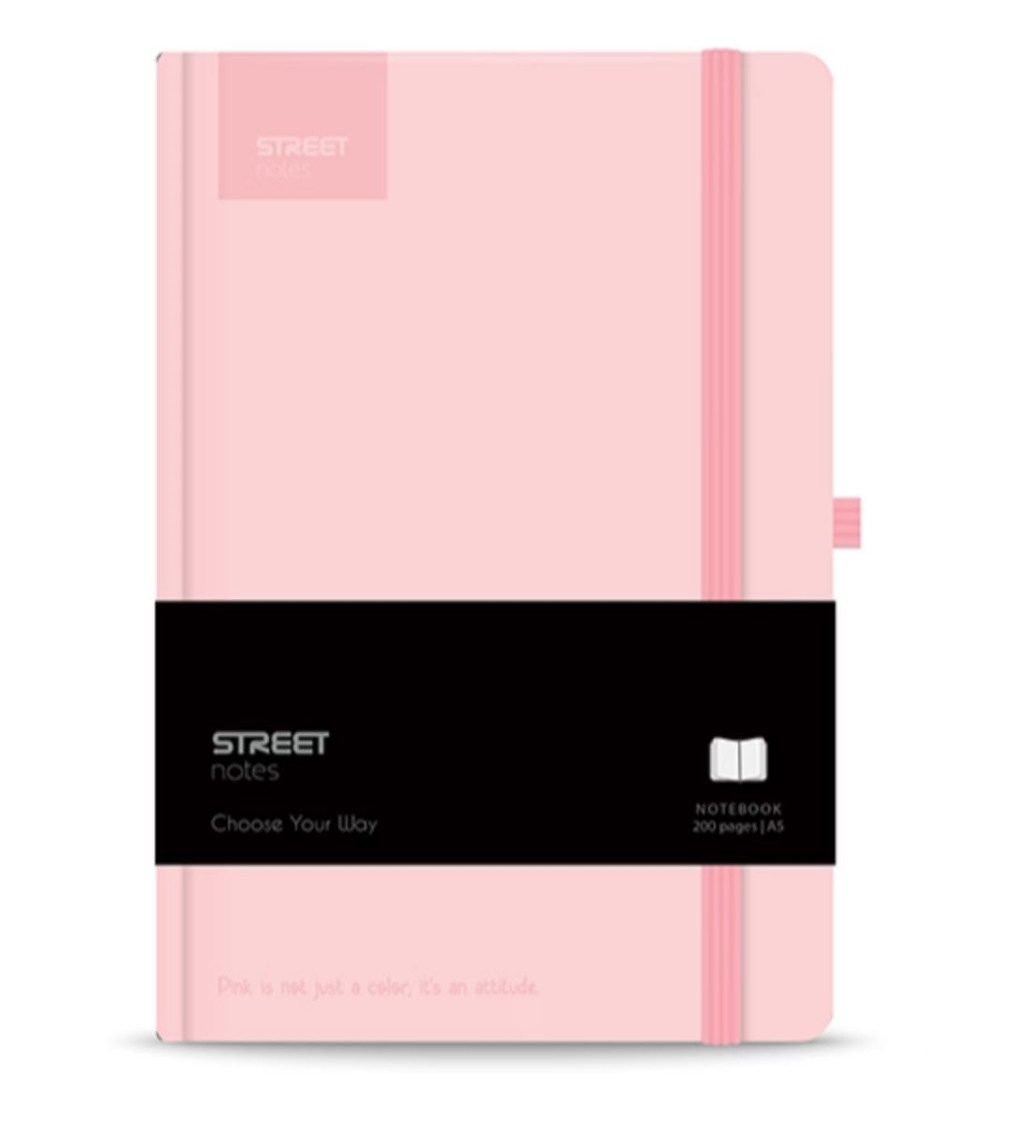 STREET Casual A/5 96 lapos gumis keményfedelű pasztell rózsaszín notesz