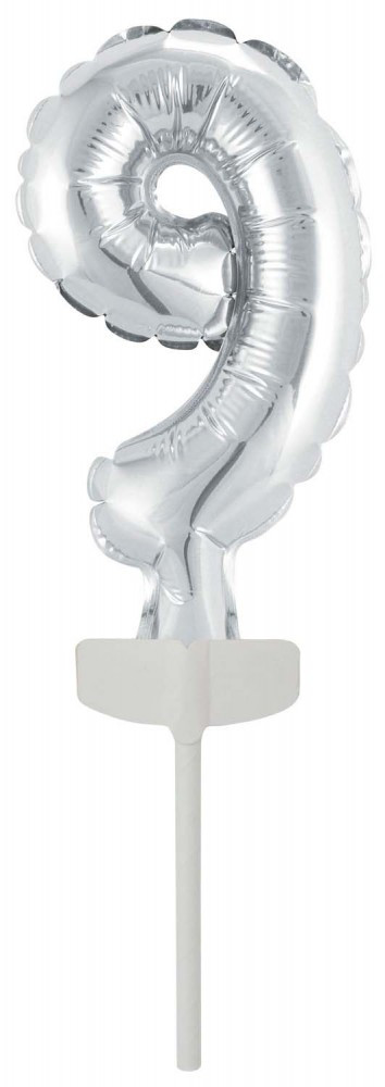 Silver, Ezüst 9-es szám fólia lufi tortára 13 cm