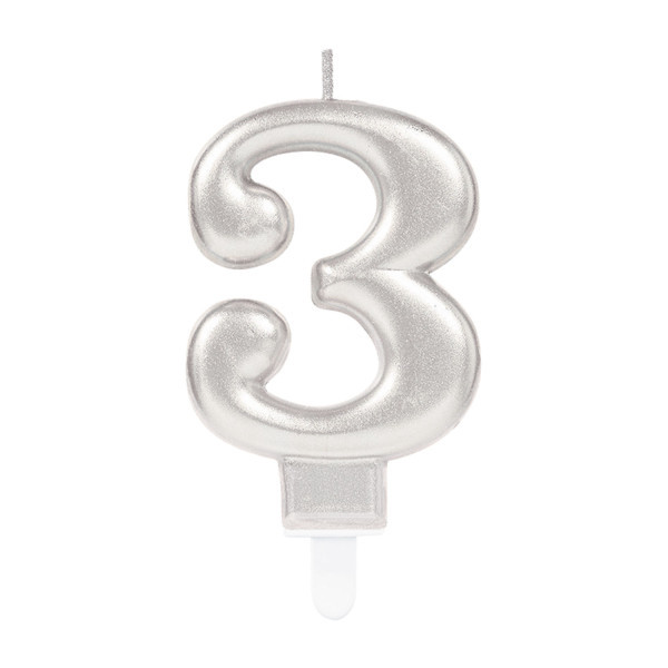 Silver Metallic, Ezüst számgyertya, tortagyertya 3-as