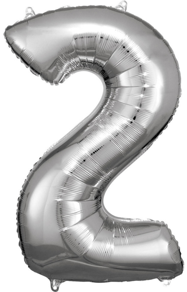 Óriás 2-es szám Fólia lufi, Silver 86*53 cm