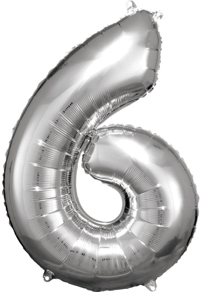Ezüst Silver óriás szám fólia lufi 6-os, 86x58 cm