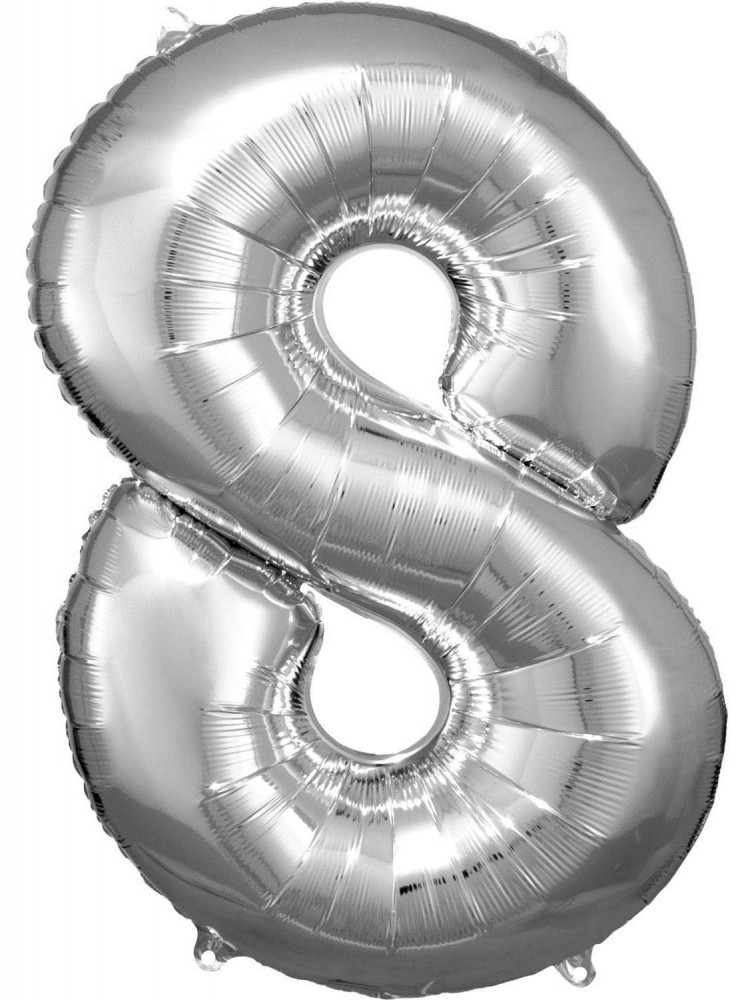 Ezüst Silver óriás szám fólia lufi 8-as, 83x55 cm