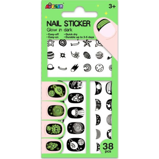 38 db-os sötétben világító körömmatrica készlet az Avenir márkától.