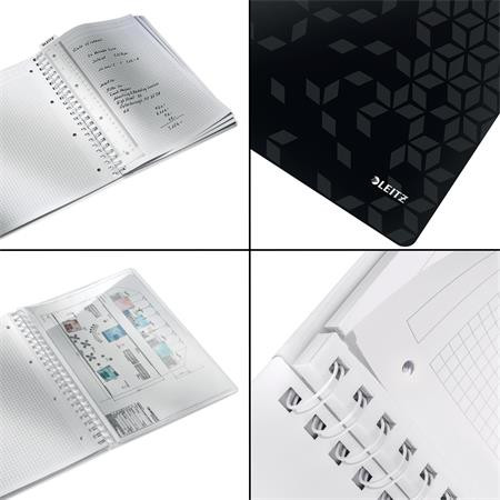 Spirálfüzet, A4, kockás, 80 lap, LEITZ "Wow", fekete