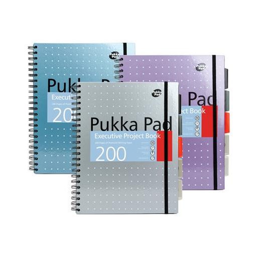 Spirálfüzet, A4+, vonalas, 100 lap, PUKKA PAD "Metallic Project Book", vegyes szín