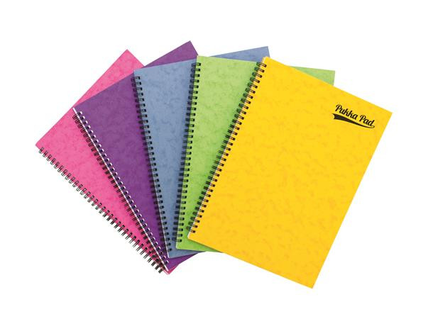 Spirálfüzet, A4, vonalas, 60 lap, PUKKA PAD "Pressboard", vegyes szín