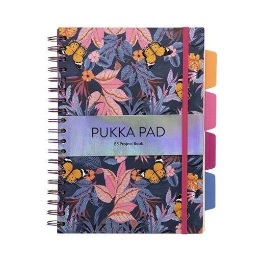 Spirálfüzet, B5, vonalas, 100 lap, PUKKA PAD "Project Book Bloom", vegyes minta