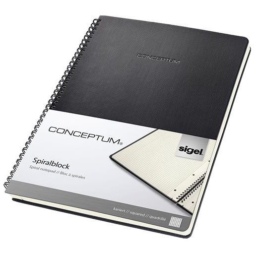 Spirálfüzet, exkluzív, A4, kockás, 80 lap, keményfedeles, SIGEL "Conceptum", fekete