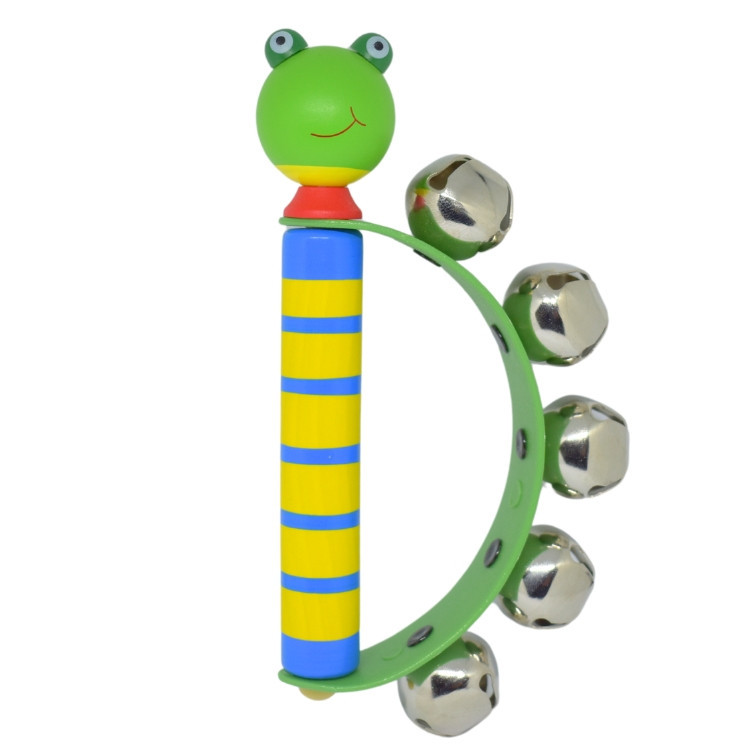 Fából és fémből készült száncsengő béka figurával díszítve. Kellemes, csilingelő hangot ad ki, mihelyst a kezünkbe vesszük. Markolatának köszönhetően könnyen megfogható akár kisgyermekek számára is. Ez a ritmushangszer a szórakozás mellett, fejleszti a hallást és a ritmusérzéket.