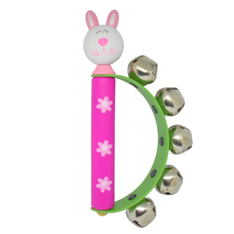 Fából és fémből készült száncsengő nyuszi figurával díszítve. Kellemes, csilingelő hangot ad ki, mihelyst a kezünkbe vesszük. Markolatának köszönhetően könnyen megfogható akár kisgyermekek számára is. Ez a ritmushangszer a szórakozás mellett, fejleszti a hallást és a ritmusérzéket.