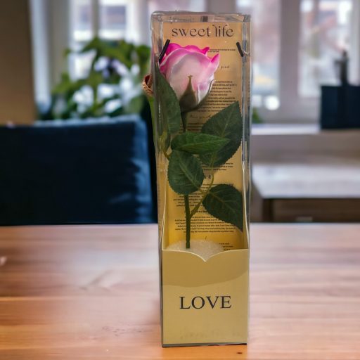 Rózsaszín szappanrózsa dobozban