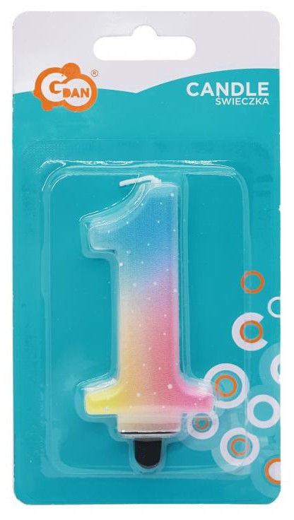 Színes 1-es Pastel Ombre számgyertya, tortagyertya