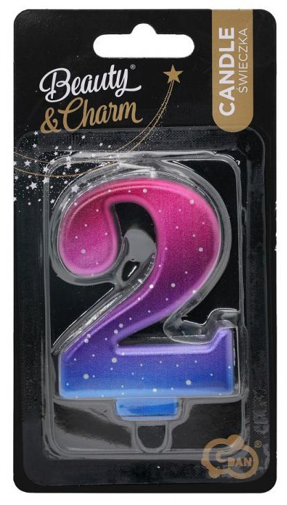 Színes 2-es Night Sky Metallic számgyertya, tortagyertya
