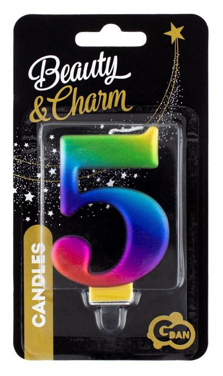 Színes 5-ös Galaxy számgyertya, tortagyertya