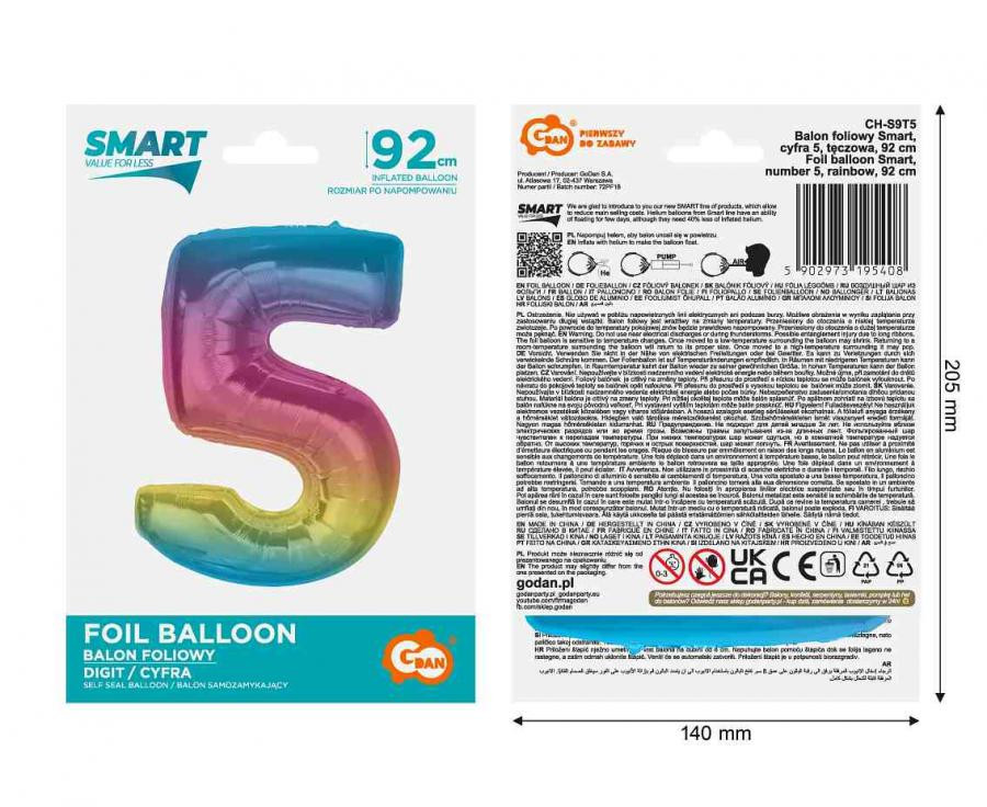 Színes 5-ös Rainbow szám fólia lufi 92 cm