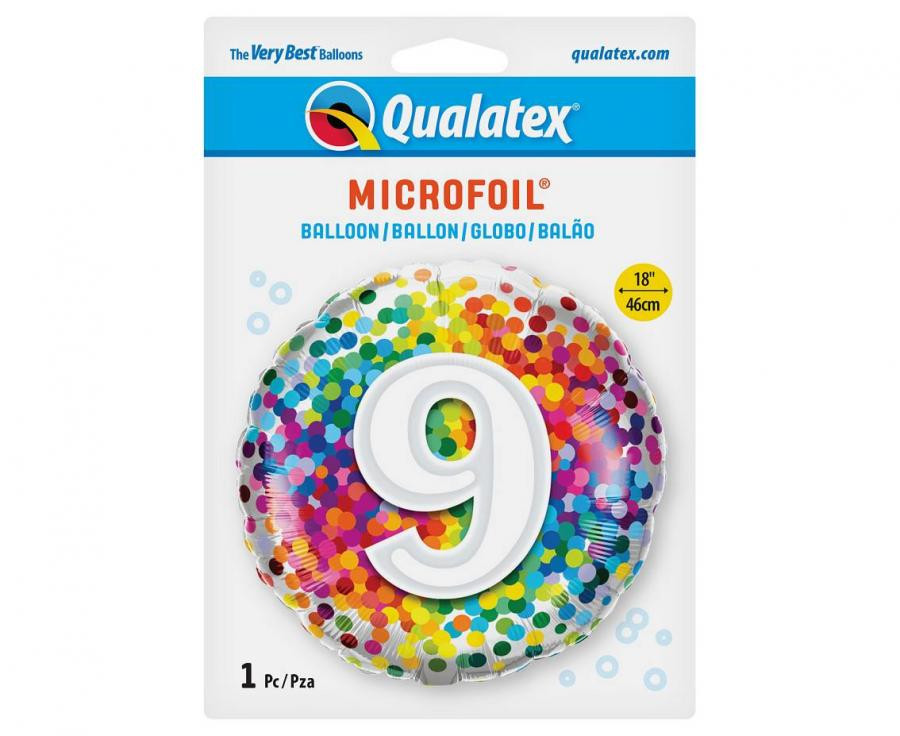 Színes 9-es Rainbow Confetti szám fólia lufi 46 cm