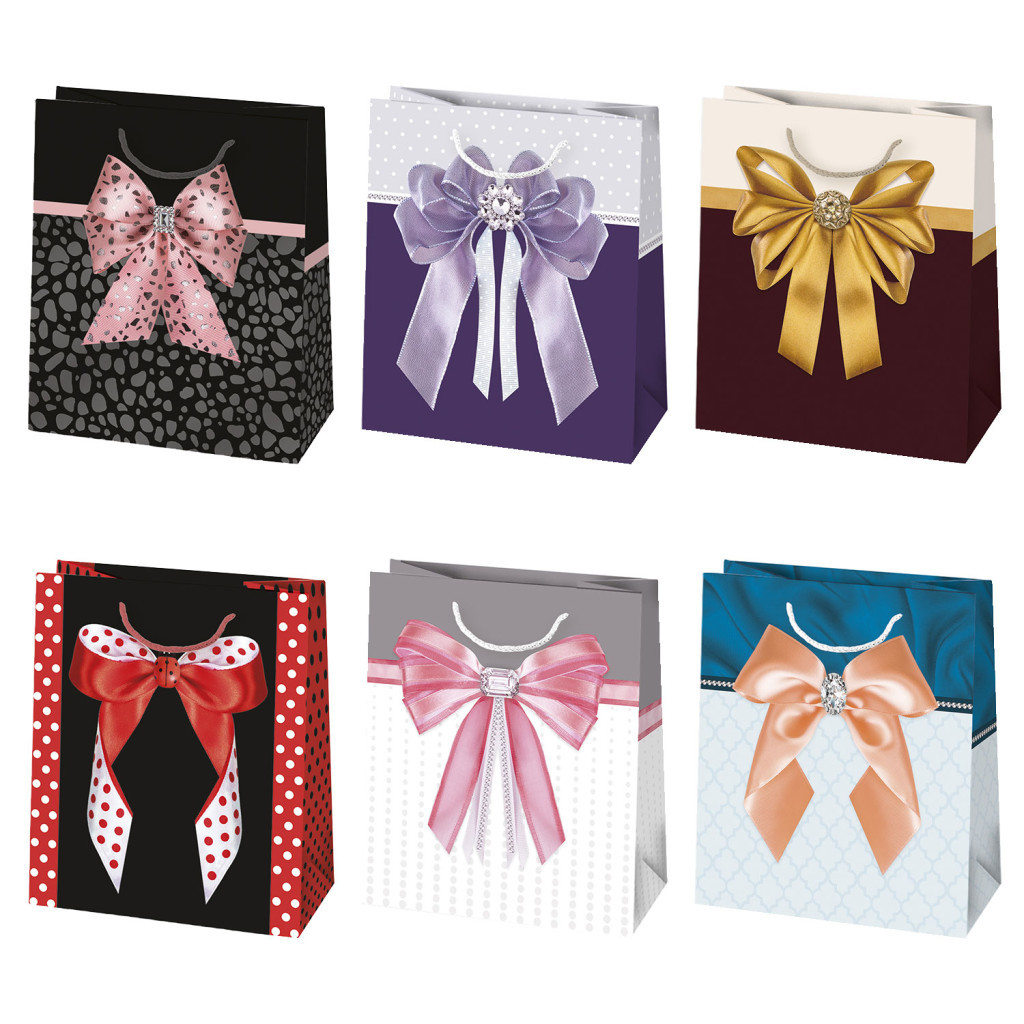 Színes Bow papír ajándéktasak, ajándékzacskó 19x23x10,5 cm