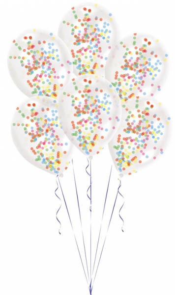 Színes Colorful konfettivel töltött léggömb, lufi 6 db-os 11 inch (27,5 cm)