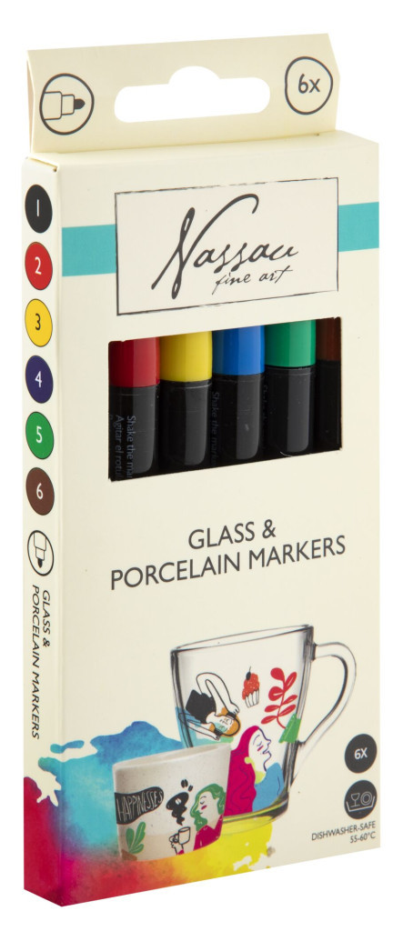 Színes Nassau üveg és porcelánfestő filctoll 6 db-os