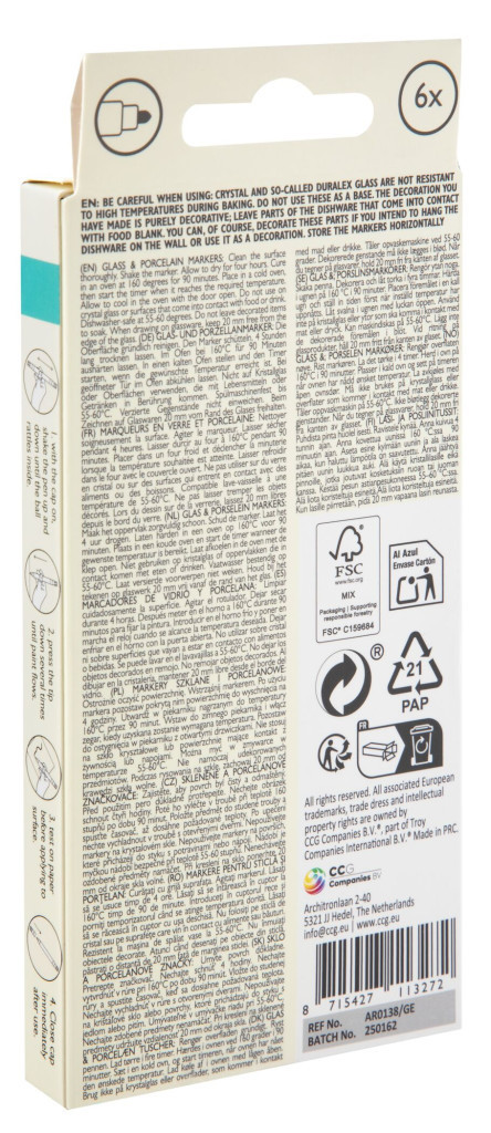 Színes üveg és porcelánfestő filctoll 6 db-os