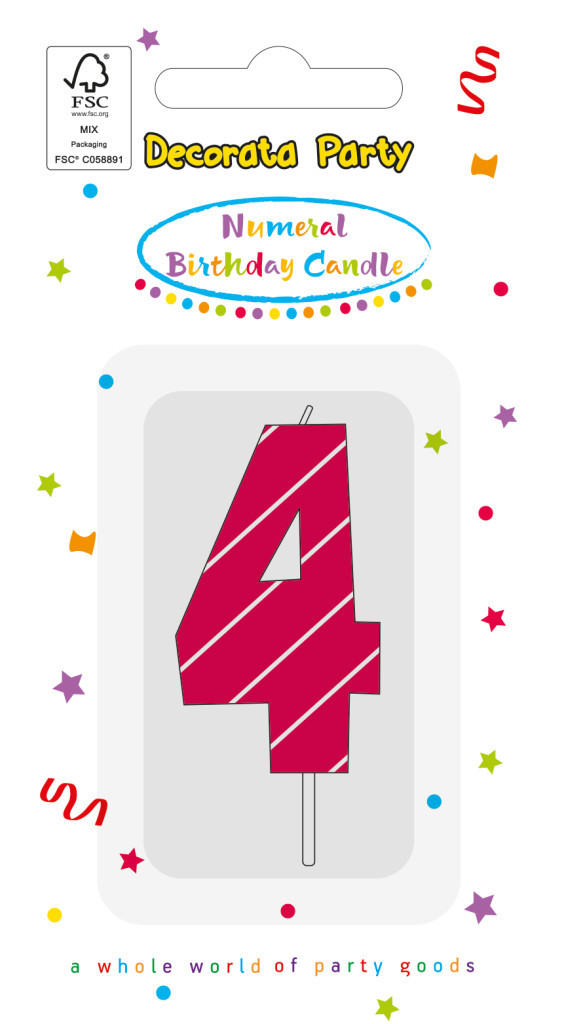 Színes 4-es tortagyertya, számgyertya