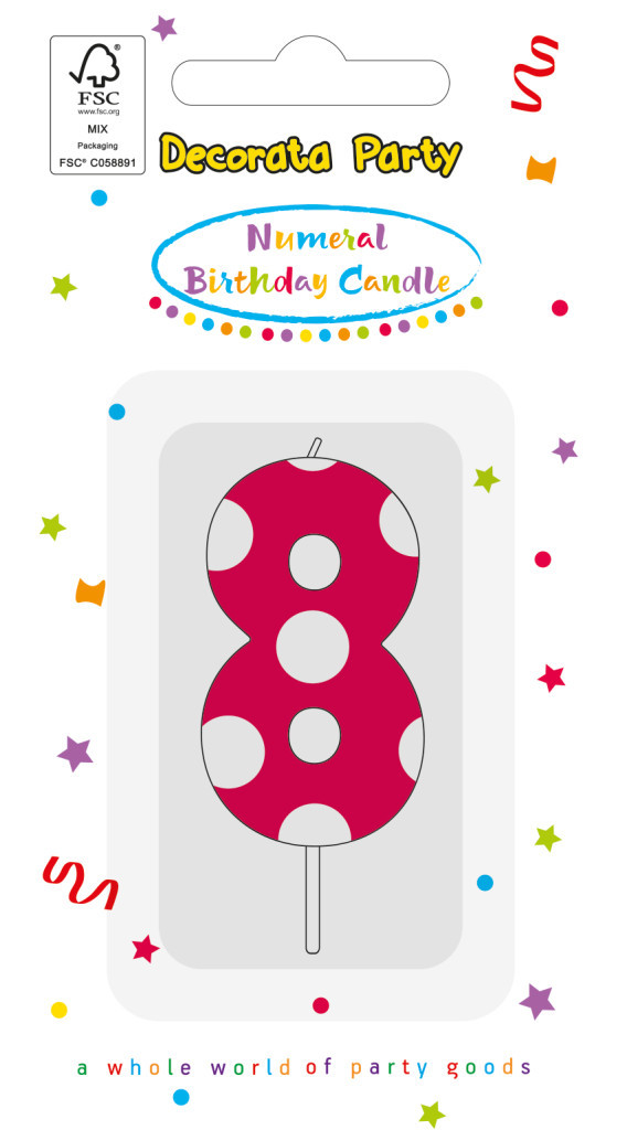 Színes 8-as tortagyertya, számgyertya