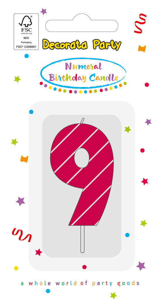 Színes Pink Pattern 9-es tortagyertya, számgyertya