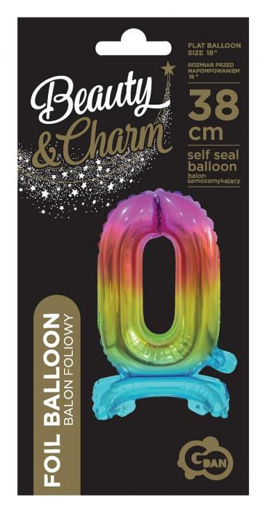 Rainbow, Színes mini 0-ás szám fólia lufi talppal 38 cm