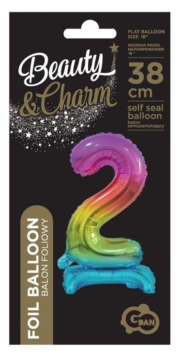 Színes Rainbow mini 2-es szám fólia lufi talppal 38 cm