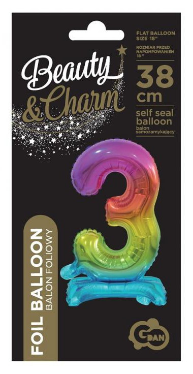 Színes Rainbow mini 3-as szám fólia lufi talppal 38 cm